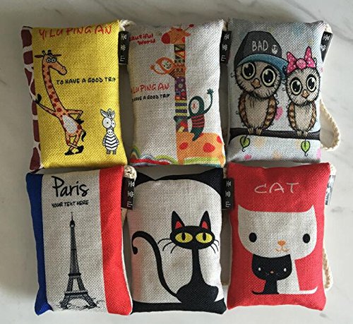 Natural Air Purifier Bamboo Charcoal Bag Air Freshener Most Effective Odor Remove Portable Cute Cartoon Air Freshener for Fridge, Freezers, Closet, Car & Shoes(100g X 6 Pack)