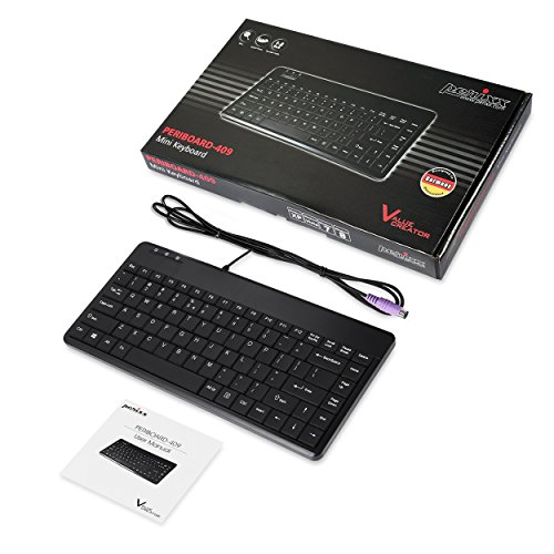 Perixx PERIBOARD-409P, Mini Keyboard - PS2 Interface - 12.40x5.79x0.79 Inch Dimension - Piano Finish Black - US English Layout