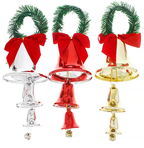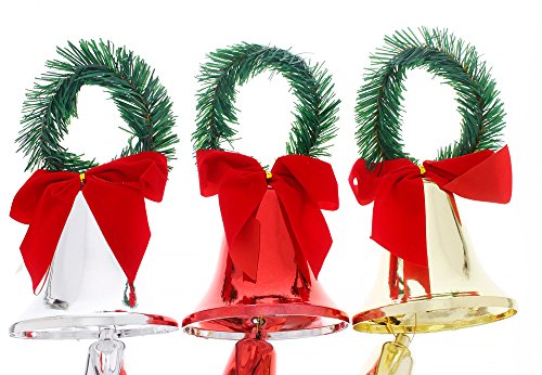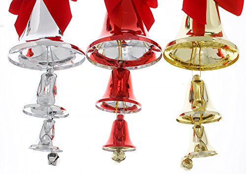 Holiday Christmas Elegant Classic Door Knob Hanger Bell Decorations ,Red, Gold & Silver, Large 3 Pack, 13"