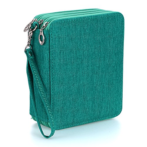 BTSKY Zippered Pencil Case--Canvas 72 Slots Handy Pencil Holders for for Prismacolor Watercolor Pencils, Crayola Colored Pencils, Marco Pencils (Green)