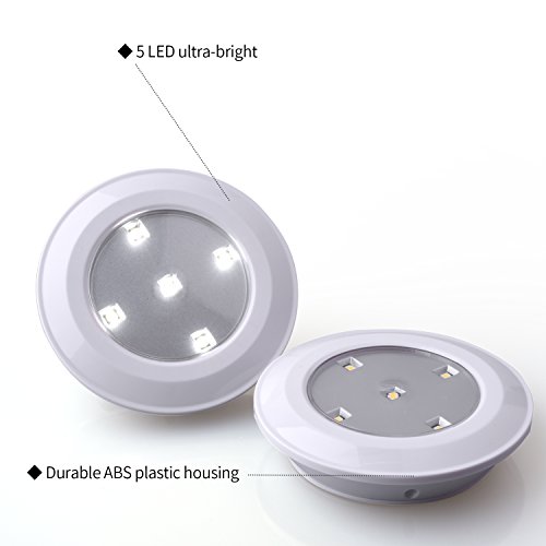 Tap Lights 2 Pack LED Battery Operated Stick On Lights Wireless Closets Cabinets Cupboards Lights Puck Lights, White