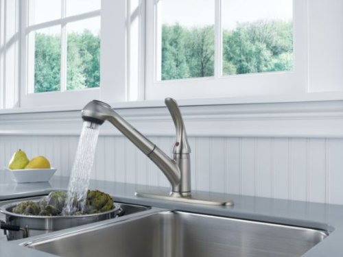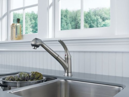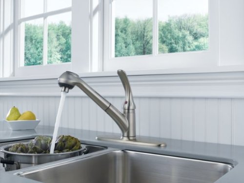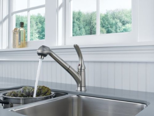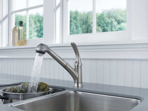 Delta Foundations B4310LF-SS Single Handle Pull-Out Kitchen Faucet, Stainless