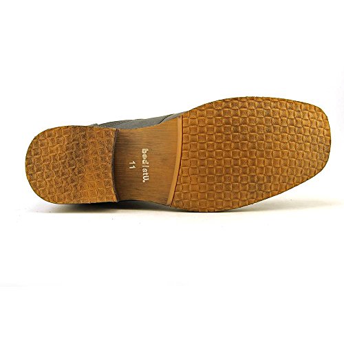 Amazon.com For a rugged, rustic look, check out this boot from BED:STU. The Burst features a weathered leather upper with studded details and a side-zip for a quick on-and-off. Beneath, a stacked heel adds class, while the manmade sole ensures your every step stays true. 0