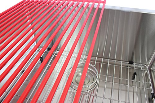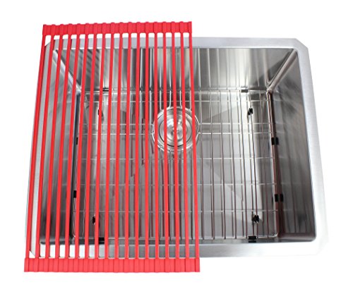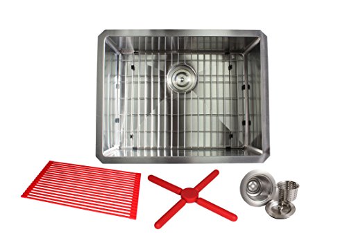 - BONUS KITCHEN ACCESSORIES AND KITCHEN GADGETS: Along with your stainless steel sink and everything you need to install it, you will also receive a set of handy accessories to get you started with your new kitchen! These include a matching protective bottom grid for the sink, a deluxe lift-out basket strainer, a multipurpose roll-up silicone dish rack, and a handy silicone pot placemat trivet!