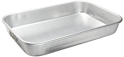 -. Feature : Rectangular pan can be used to bake or roast foods / Made of 16-gauge aluminum, which distributes heat and weighs less than steel / Rounded, open bead rim provides rigidity and can be washed and wiped clean / Drop handles allow pan to be held or moved / Weighs 1.67 lb.; measures 2-3/8 x 11-3/4 x 17-5/8 inches (H x W x D)