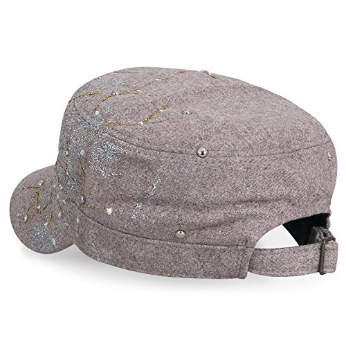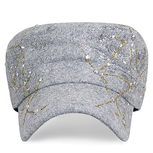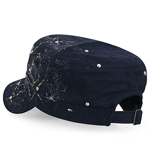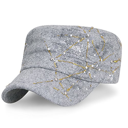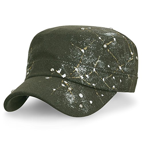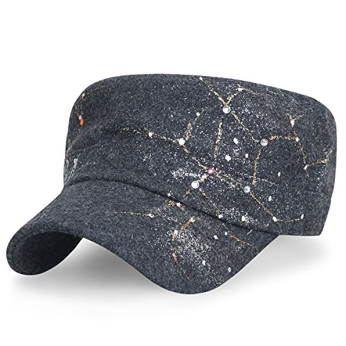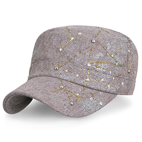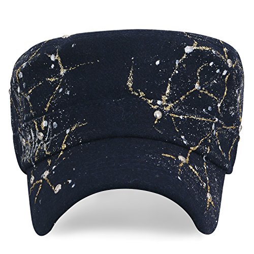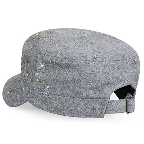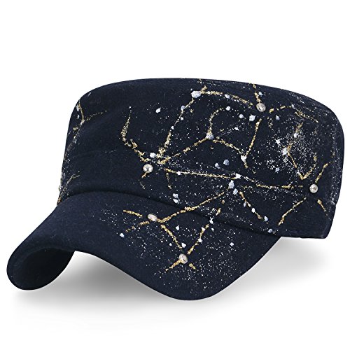 Binding : Apparel Product Description ililily Constellation Studs Wool-blend Military Cadet Cap Glitter Army Style Hat Style: military inspired army cap with adjustable strap in 5 colors Trim/Embellishment: wool-blended constellation glitter and studs detail military army cap Crown: round and flat top cadet cap Brim: vintage curved short brim army style hat Inner band: approx. 56 cm (7) / brim width: approx. 6 cm (2.25") Material: 80% Wool 20% Polyester Wash Instruction: Do not wash, wipe with moist cloth Measurement: Small Inner Band:56cm (7) Color Disclaimer: Due to monitor settings and monitor pixel definition, the color seen may be slightly different from the actual color. 0