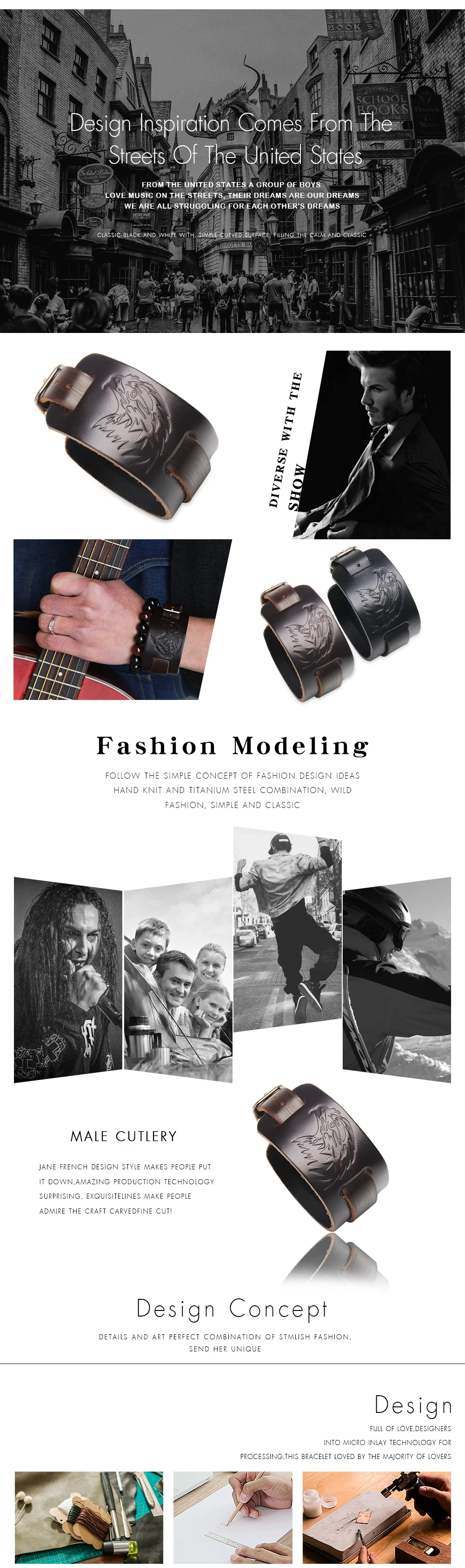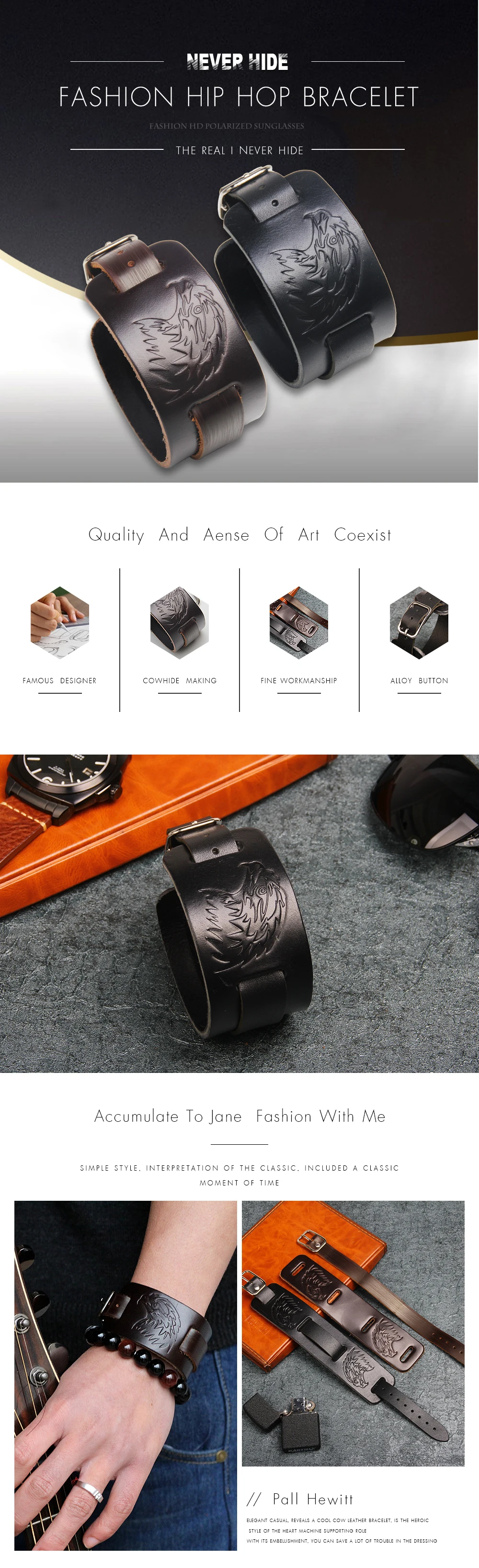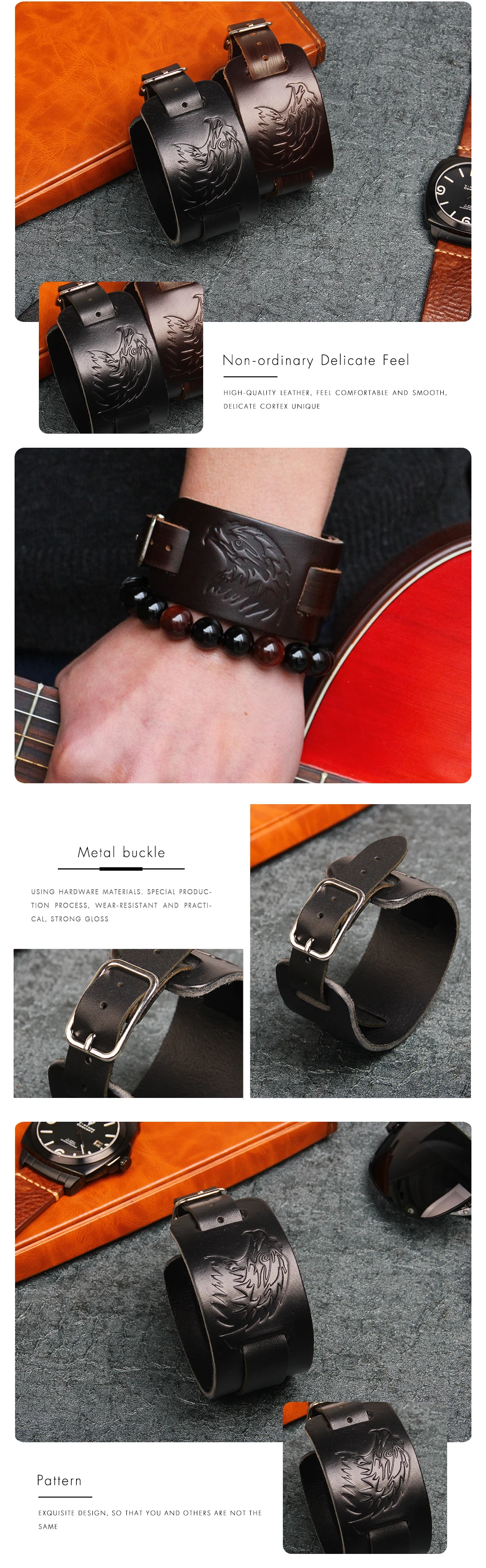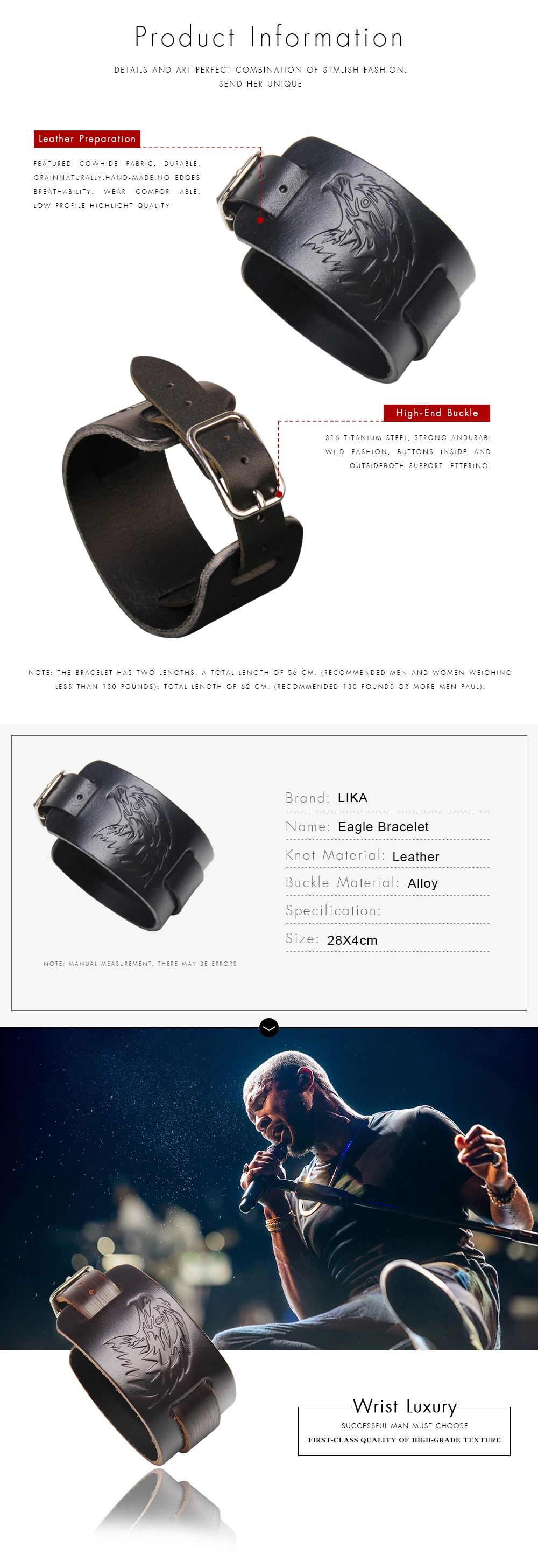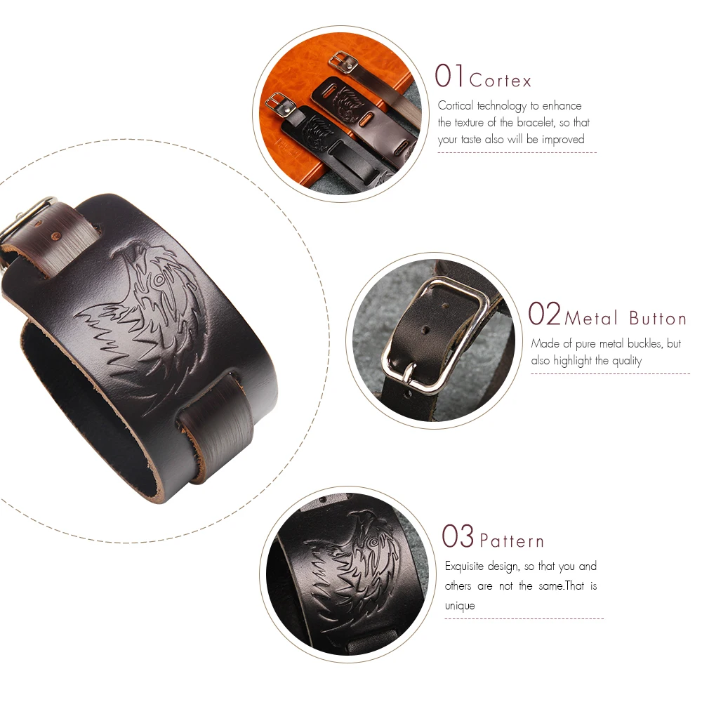 Feature :Punk Rock Leather Bracelet for Women Men