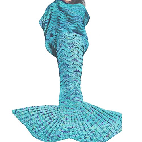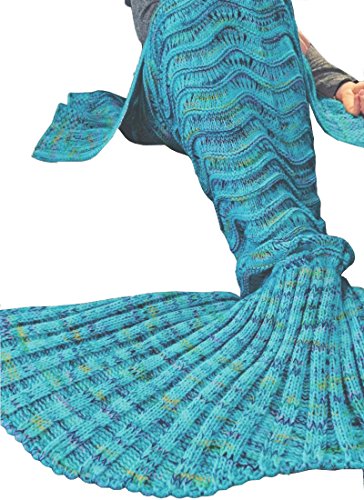 Feature : • A SOFT AND FLUFFY SIREN IN YOUR LIVING ROOM: Crochet knitted by hand, made of a high quality fabric blend (80% polyester, 20% cotton) this mermaid blanket is super soft and fluffy, as no other sea nymph can be. Bound to keep warm or preserve your leg's temperature, the ideal blanket for your lazy moments. / • A UNIQUE SLEEPING BAG: This mermaid tail blanket has the form of a sleeping bag, which means that you can wiggle your feet, exactly like mermaids do, but instead of swimming, you will keep your feet warm. The perfect wrap for the sofa, couch, bed or car to enjoy your reading, watching TV or nap. / • A BEAUTIFUL SEA CREATURE WASHED UP ON SHORE?: A creative and cuddly way to enhance your living room or bedroom décor. The bright color and beautiful cable knitted pattern along with the cute tail shape this blanket has, will make this cutie not only a wonderful addition, but the sea queen of your comforter blankets as well. / • FLAP YOUR TAIL ALL YEAR ROUND: The soft and breathable fabric blend makes this blankie suitable to use all year round. You do not have to wait for winter to settle, as this blanket is made of lightweight crochet knitted polyester and cotton, making it ideal for cool autumn and spring evenings. / • A DAZZLING AND ORIGINAL GIFT: Ideal for adults and kids alike, who can resist to the thought of wiggling their new fluffy mermaid tail in the comfort of their couch or bed? An elegant gift that will be definitely cherished by women and girls of all ages, yet not lacking in quality, comfort and usefulness.