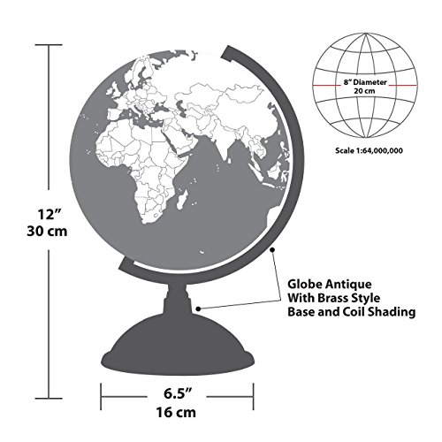 Studio : Silk Road Wholesale Publisher : Silk Road Wholesale Product Description The Perfect Child Educational Gift that won't cost the EARTH. (Pardon the pun) Empower your Children?to love to learn and grow their curiosity. If you are looking for something practical that has that old world charm then this is the perfect gift for your child, a smarter choice for the discerning parent or educators out there. This medium-sized World Globe is the perfect size for any desktop, bench, shelf or simply on the floor so you can educate your child in geography about all the amazing places.? Or simply place it in your children's' bedroom as a great decor piece. 0
