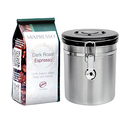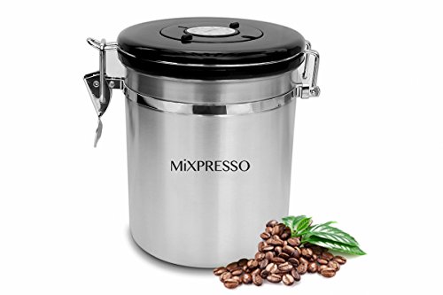 Coffee Container Airtight - Coffee Vault - by Mixpresso (16 Ounces, Silver)