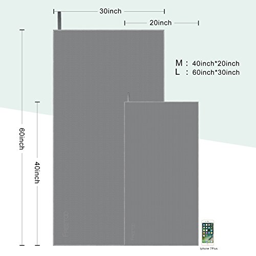 -. Feature : NEW CONCEPT TRAVEL/BATH/SPORTS TOWEL: Made of split microfiber, much thinner, lighter, softer, and absorbs 9x water, dry 3x faster, volume 4x smaller and weight 2x lighter compared with cotton towels. / QUICK DRYING & HIGHLY ABSORBENT: Dry an adult's body as well as hair easy and fast; It dries quickly in hours even in hotel bathroom and always stay dry and fresh for the next use: save you the nightmare of carrying moist and stale towels during a trip. / BIG IN TOWEL & SMALL IN POUCH: While generously sized with two sizes available: M (40" x 20") and L (60" x 30"), this microfiber travel towel packs down tight for easy portability, and comes in a mesh carrying bag with total weight being only M (100g)/ L (220g). / ANTIBACTERIAL & EASY MAINTENANCE: This is a towel that never goes stinking, or becomes moldy or mildewed due to its material characteristics and antibacterial processing, and it is also dirt-repellent and easy to clean(machine washable). It makes the best value out of your investment as being capable of staying in good shape for years. / DETAIL ORIENTED FINISH & VERSATILE: FREETOO travel towel is built in sturdy finish for a long lifespan with neat stitching seams and hanging loop in corner designed to be soft and durable. It is also lint-free, color fading-free and silky smooth to use against the skin, and is perfect to use as sports or bath towel at beach, gym, yoga, travelling, swimming, outdoor sports, etc.