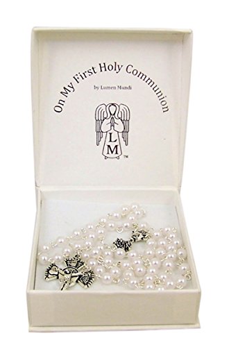 -. Title : My First Holy Communion White Prayer Bead Rosary Necklace with Chalice Crucifix, 25 Inch