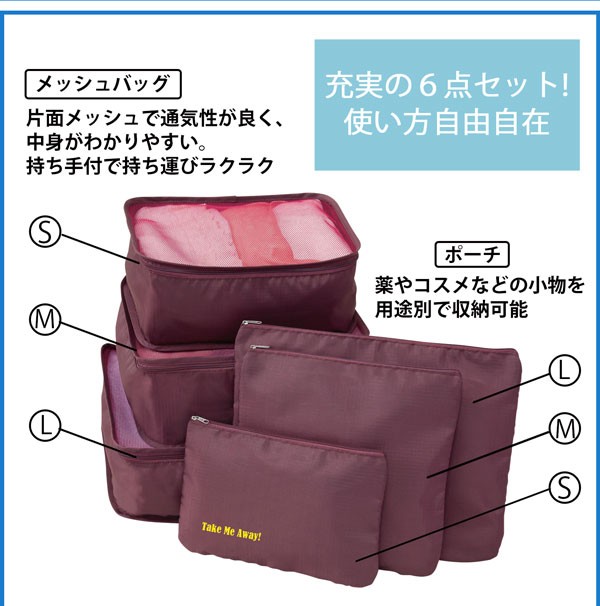 | セット内容 | バッグS・M・L、ポーチS・M・L 合計6点セット |
