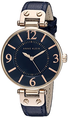 Anne Klein Women's 10/9168RGNV Rose Gold-Tone and Navy Blue Leather Strap Watch