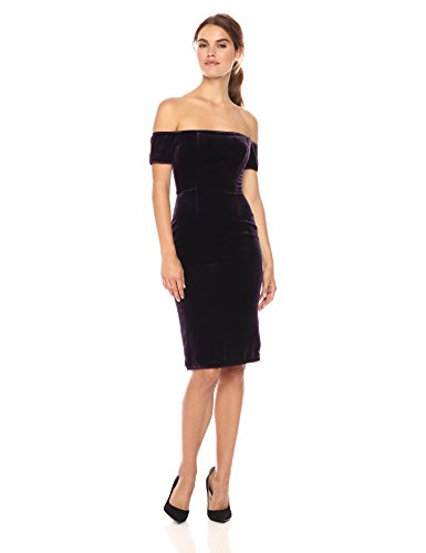 BCBGMax Azria Women's Karen Woven Crushed Velvet Off The Shoulder Dress, Plum, 2