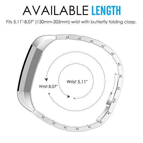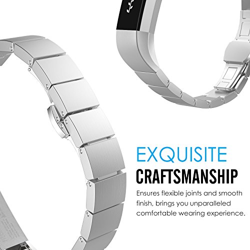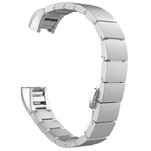 Fitbit Alta HR and Alta Bands, MoKo Stainless Steel Replacement Smart Watch Band Wrist Strap Bracelet with Butterfly Buckle Clasp for Fitbit Alta / Fitbit Alta HR, Fits 5.11"-8.07" Wrist, Silver