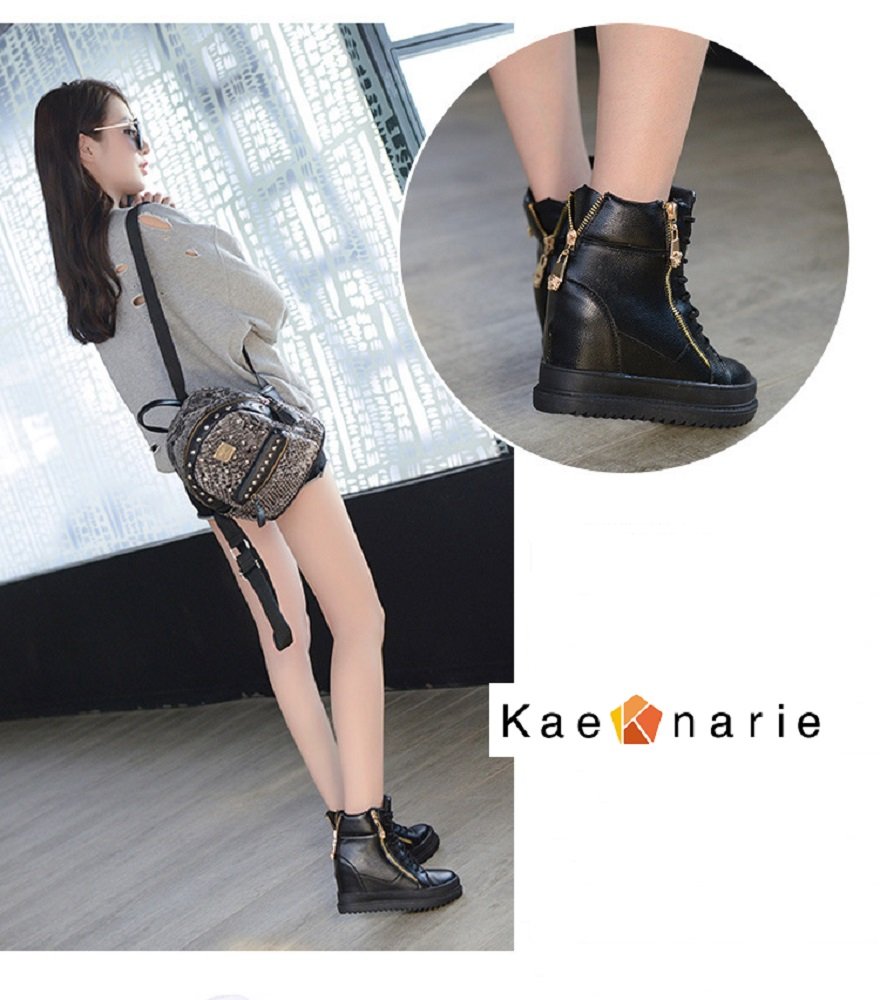 (Caenalie) Kaenarie High-cut thick bottom leather sneakers Women's gold zip insole