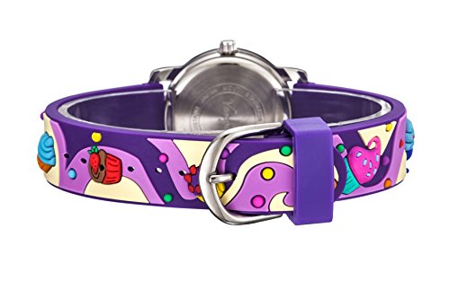 Quartz movement with analog display;Rubber link band with buckle closure.