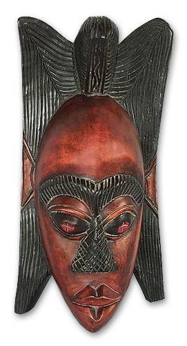 NOVICA Decorative Ghanaian Large Sese Wood Mask, Red, 'A Friendly Ghost'