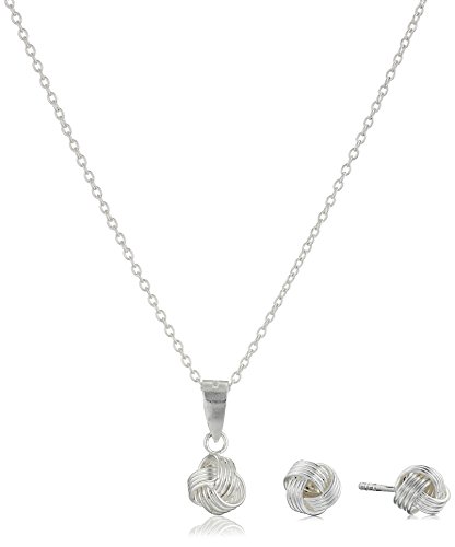 -. Title : Sterling Silver Love Knot Earrings and Pendant Necklace Jewelry Set, 18"