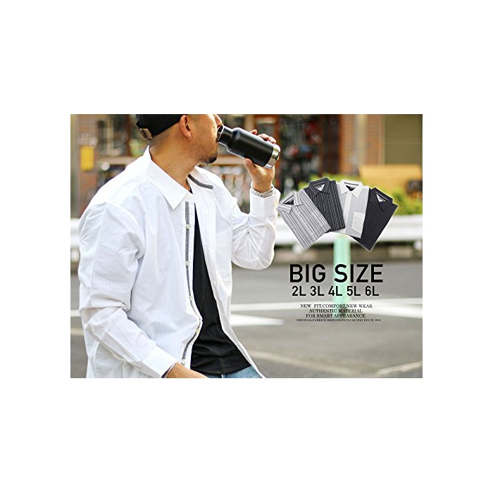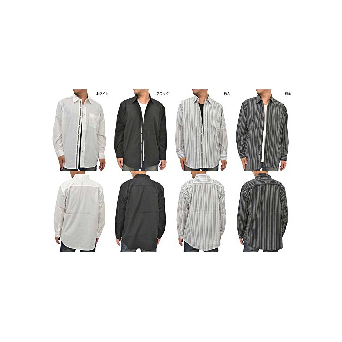 (말 강 진즈 파워 진즈 밸류) Marukawa JEANS POWER JEANS VALUE 큰 사이즈 셔츠 맨즈 긴 소매 스트라이프 무지 T셔츠 세트 앙상블 4color