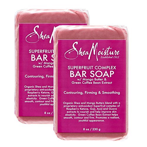 -. Binding : Health and Beauty -. Brand : Shea Moisture -. EAN : 0764302201052 -. Feature : It was designed to cleanse, deeply moisturize and rejuvenate dry skin. Helps to prevent early signs of aging. / Ethically Traded Ingredients Sustainably Produced / Tested on our family for four generations. Never on animals / SheaMoisture's Superfruit Complex Bar Soap is raw Shea Butter for your face and body. / Packaging contains a minimum of 25% post consumer resin -. IsAdultProduct : 0 -. Label : Shea Moisture -. Manufacturer : Shea Moisture -. MPN : 7.64E+11 -. NumberOfItems : 6 -. PackageQuantity : 2 -. PartNumber : 7.64E+11 -. ProductGroup : Health and Beauty -. ProductTypeName : HEALTH_PERSONAL_CARE -. Publisher : Shea Moisture -. Studio : Shea Moisture -. Title : Shea Moisture Superfruit Complex Bar Soap 8oz - Pack of 2 -. UPC : 764302201052
