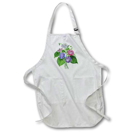 3dRose apr_18235_2 Flowers Morning Glory Medium Length Apron with Pouch Pockets 22 by 24"