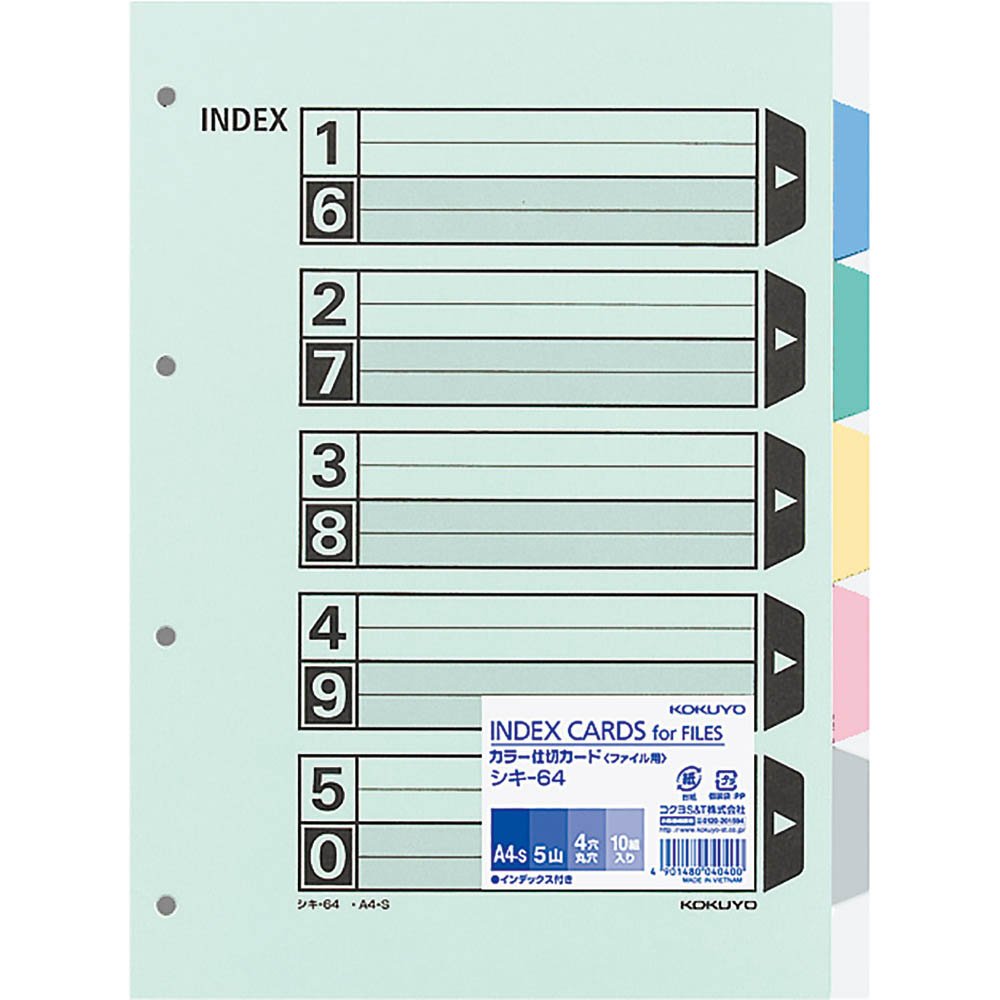 5 Mt 10 pairs Kokuyo S & T color partition card A4 portrait 4 hole (japan import)