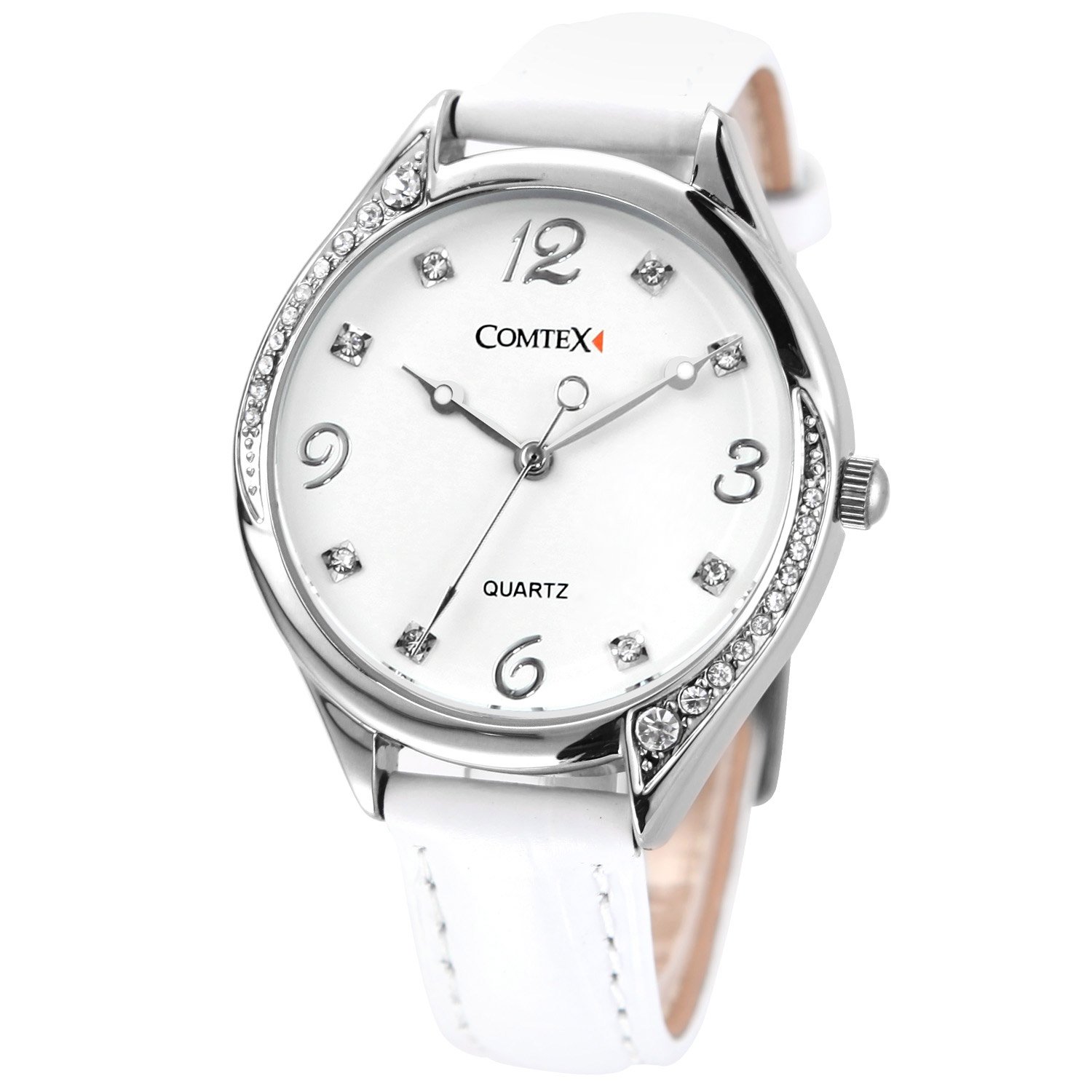 A beautiful simple white dial plate, a diamond attached to the silver side, makes the watch look more beautiful.