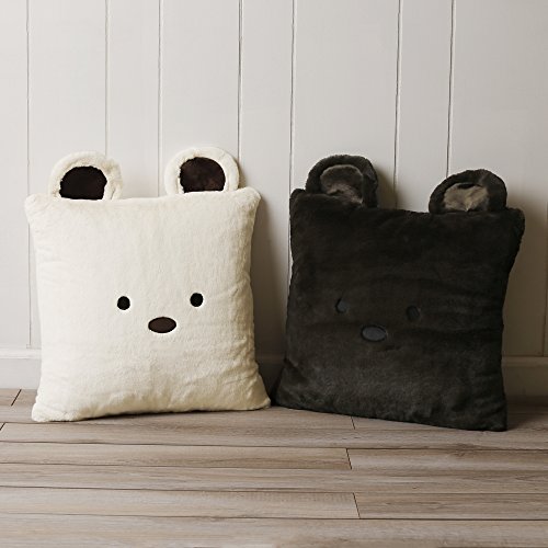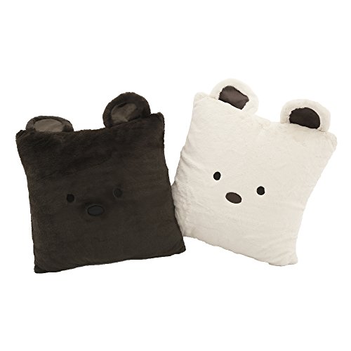 -. Feature : Available in Cream Rabbit, Pink Rabbit, Taupe Dog, Lavender Hippo, Chocolate Bear, Cream Bear, Black Cat, Grey Elephant / Zipper closure, unzips completely to open flat / Rolls up with roll-up velcro straps / Pillow measures 18" W x 18" L. 100% polyester. Comes as a set. Inserts not included. / Machine wash cold, gentle cycle. In large capacity machine, only non-chlorine bleach when needed, tumble dry low, remove promptly. Dry Clean For Best Results.