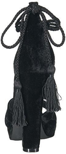 Product DescriptionCriss-cross toe straps on luxurious velvet platform heel with satin ankle wrap0