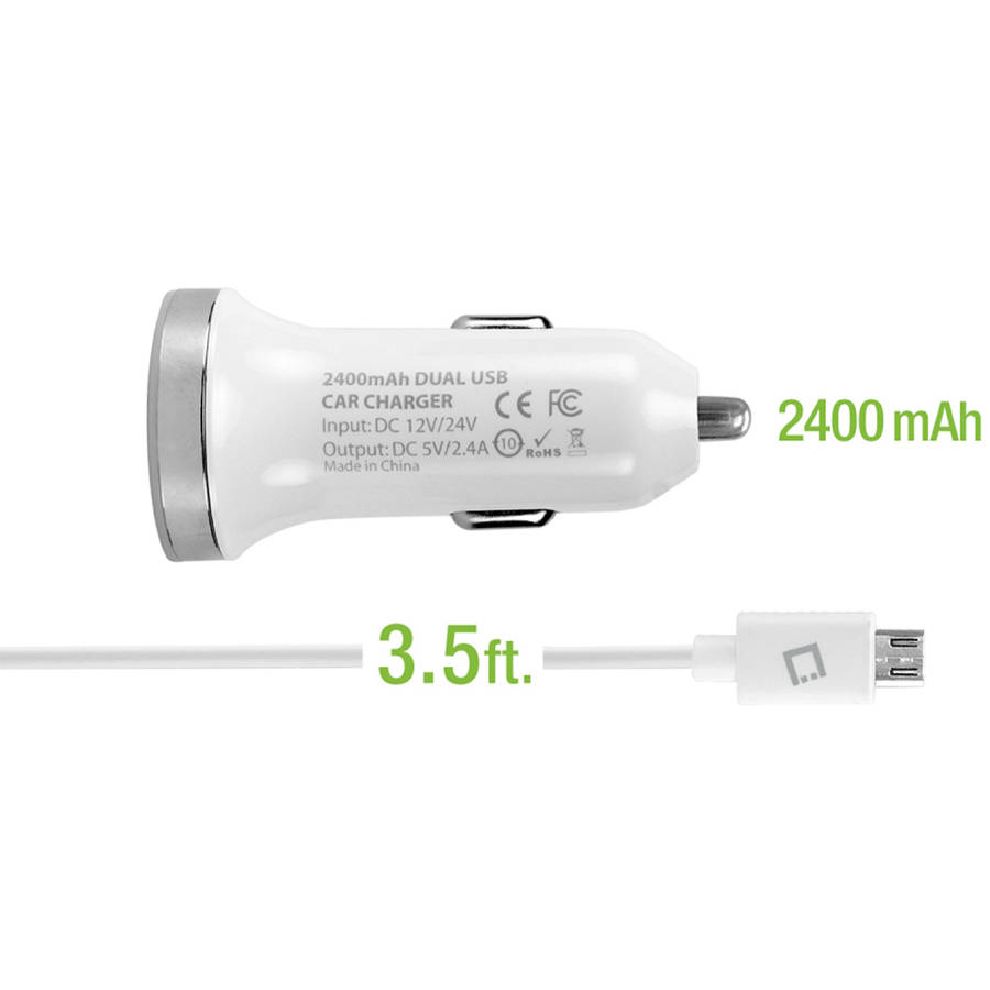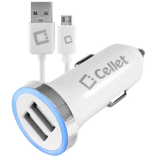 With its sleek compact design, it provides easy access to your USB ports while plugged into your car cigarette outlet and the blue LED light indicator shows that your device is plugged in and charging. Charger provides 12 watts (2.4 amps) of power that can charge up (to two) smartphones at the same time or a tablet with a smartphone. The built-in smart IC chip technology prevents your device from overcurrent, overcharging and overheating. Use the included microUSB cable to charge your microUSB-compatible device and your iPhone or iPod simultaneously (Apple cable not included). The dual USB ports are compatible to any USB ready devices. Cellet High-Power 12-Watt (2.4-Amp) Dual USB Port Car Charger with microUSB Cable, White: