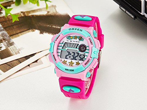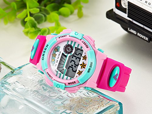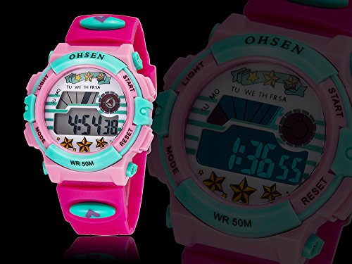-. Binding : Watch -. Brand : OHSEN -. Department : girls -. EAN : 0713831222403 -. Feature : OHSEN Brand sport watches series, attractive / Advanced manufacturing technology, high quality silicone watch band make it wear comfortable / Clearance LED Display time in numbers indicate the hour, minutes and seconds / 50 Meters Water resistant (Please don't press any key underwater) / EL backlight lets you know the time clearly in darkness -. Label : China -. Manufacturer : China -. Model : 1603-Rose Red -. MPN : 1603-Rose Red -. PackageQuantity : 1 -. PartNumber : 1603-Rose Red -. ProductGroup : Watch -. ProductTypeName : WATCH -. Publisher : China -. Studio : China -. Title : Ohsen Brand Digital Quartz Wrist Watch Kids Girls 50M Waterproof Pink Silicone Strap LCD Back Light Alarm Clock -. UPC : 713831222403