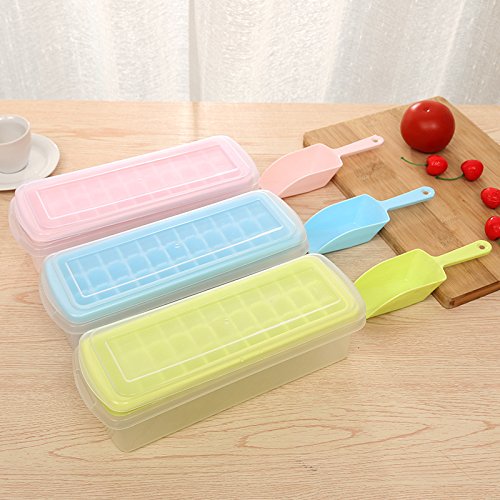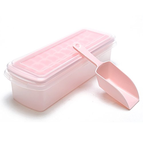 Papi Cool Mini Ice Cube Tray With Removable Cover, Ice Scoop, Preservation Box, 33 cubes, Multi Color (pink)