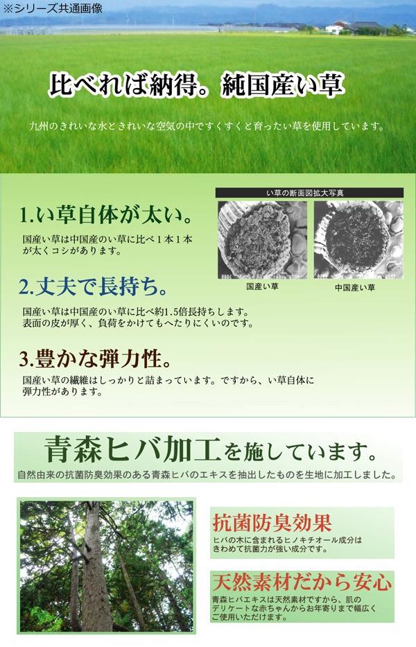 fk094igrjs上敷きを敷くだけで畳のお部屋をリフレッシュ出来ます日焼けしてしまった畳のリフレッシュに、新品の畳を汚さないためのカバーにご使用下さい サイズ 江戸間4.5畳(約261×261cm) 個装サイズ:50×90×7cm 重量 個装重量:5200g 素材・材質 い草(九州産) ヘリ:ポリプロピレン、ポリエチレン 生産国 日本 さっと敷くだけで清々しいお部屋に 上敷きを敷くだけで畳のお部屋をリフレッシュ出来ます日焼けしてしまった畳のリフレッシュに、新品の畳を汚さないためのカバーにご使用下さい