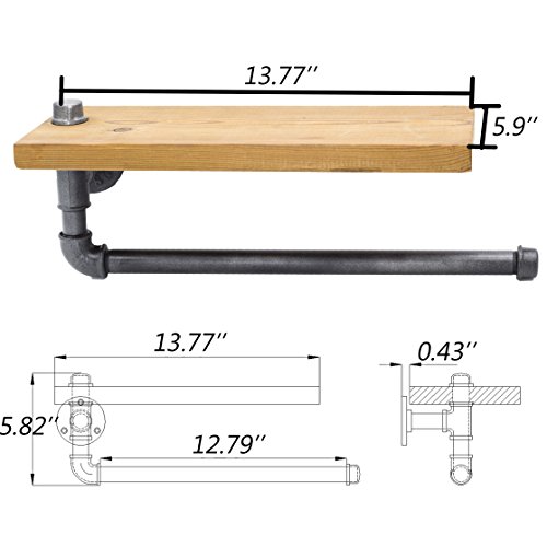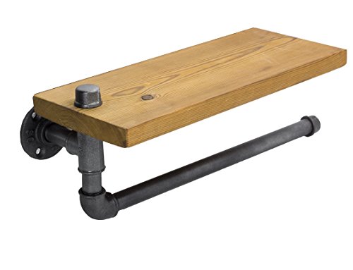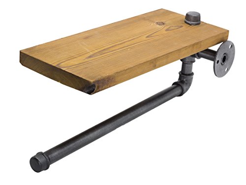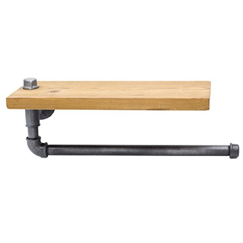 Y-Nut Industrial Vintage Paper Towel Holder "Gordon" With Shelf Spice Rack TPD-004, Steampunk Loft Style Kitchen Laundary Room Organizer, Wood Metal Water Pipe