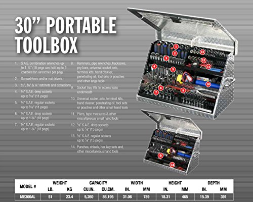 Montezuma Portable Tool Box - 30" x 15" Truck Bed Storage Chest with Diamond Plate Aluminum Construction & Locking Lid - ME300AL