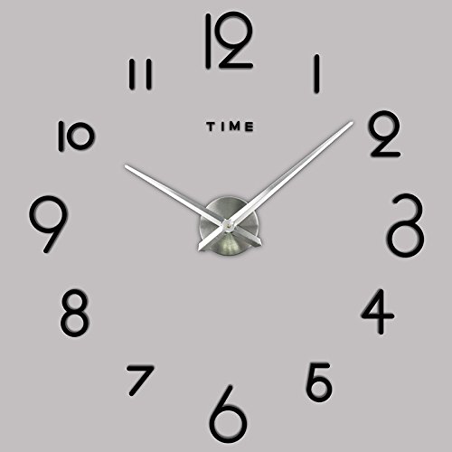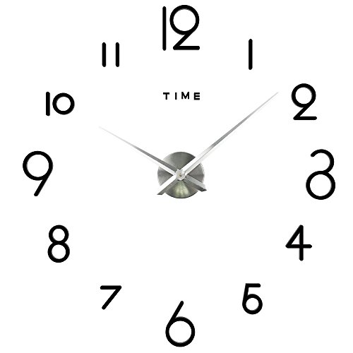 3D DIY Wall Clock, Timelike 1M Modern Frameless Large 3D DIY Wall Clock Kit Decoration Home for Living Room Bedroom (Black)