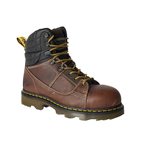 Studio : Dr Martens Publisher : Dr Martens Binding : Apparel Product Description Dr. Martens' Camber Boot is an 8-tie safety toe boot. It's made of soft, industrial-grade, tumbled leather, ideally designed for service industries. It provides excellent cushioning and comfort with its padded and molded collar, a lightweight alloy toe cap, and a classic PVC welt construction coupled with an integrated EVA core. It features a specifically designed outsole to resist clogging while providing high durability and slip-resistance. Import. 0