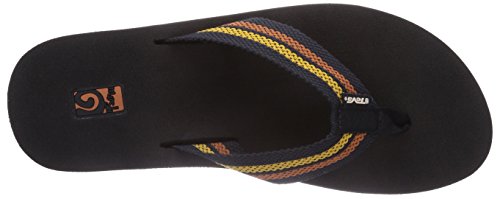 Classic flip-flop featuring striped canvas straps and contoured footbed