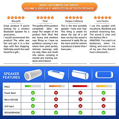 AUGUST SPECIAL! Get a Free Type C 5-Port Charger, enter code "FREE5PRT" at checkout! MAKES GREAT GIFTS for every gadget junkie. A Top Rated Portable Boombox Replacement Speaker (Literally). SATISFACTION GUARANTEE! Amazing 365 days money-back guarantee & lifetime technical support. Boldly to say better than major Brands in sound, size, quality, and value for HALF THE PRICE. Full stereo high fidelity goodness that is easy to use and stylishly good looking.