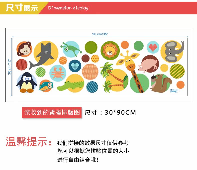 幼儿园宝宝儿童房墙贴卧室卡通墙上贴纸墙纸贴画自粘可移除动物