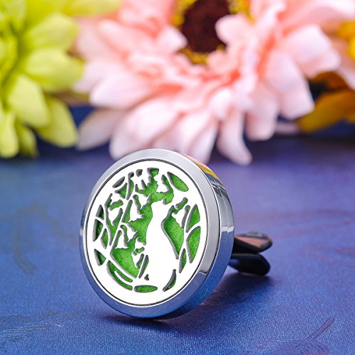 Aromatherapy Essential Oil Diffuser Vent Clip Car Air Freshener/White K Stainless steel/ Cats Flowers Vines/ Round/ Open Magnetic Lock Pendant 30mm