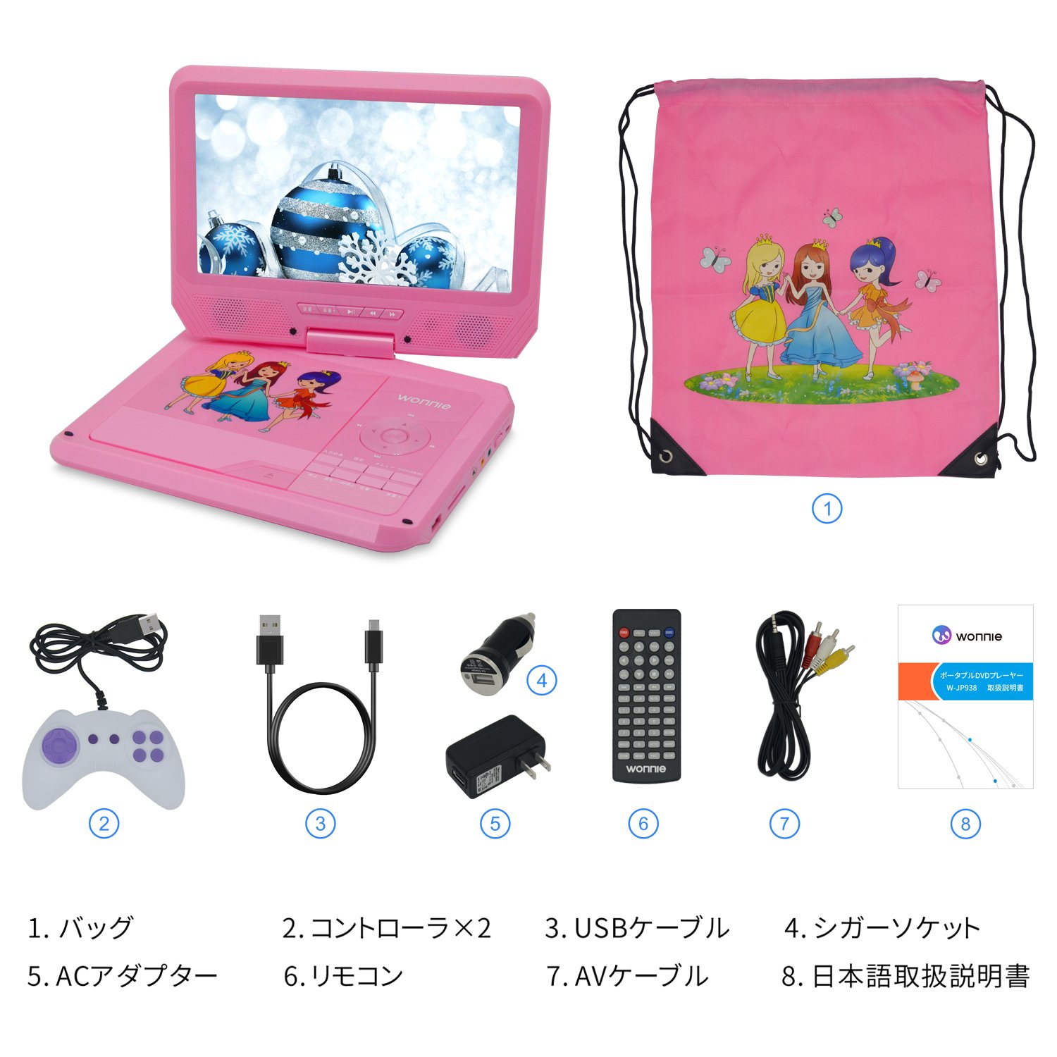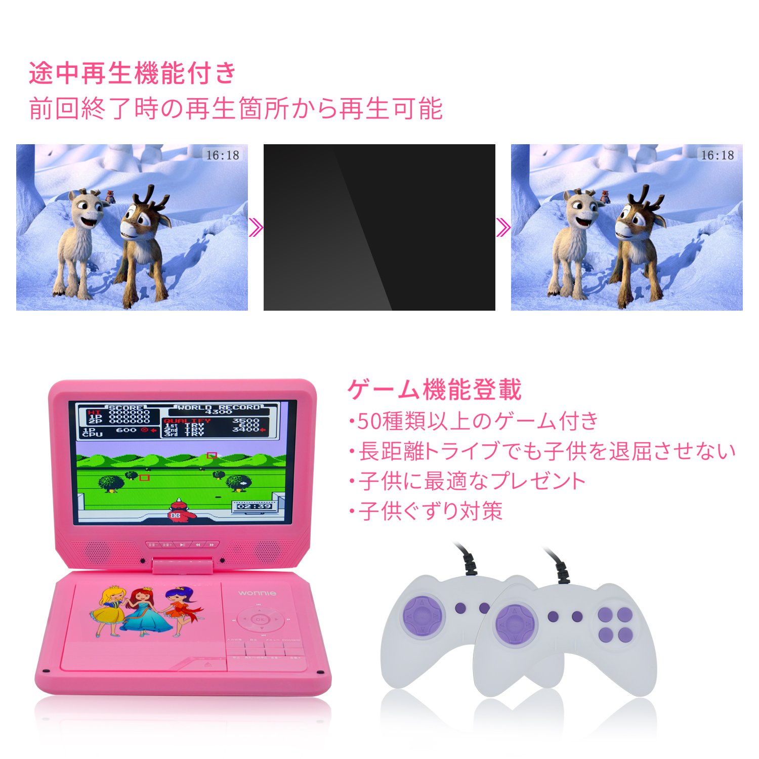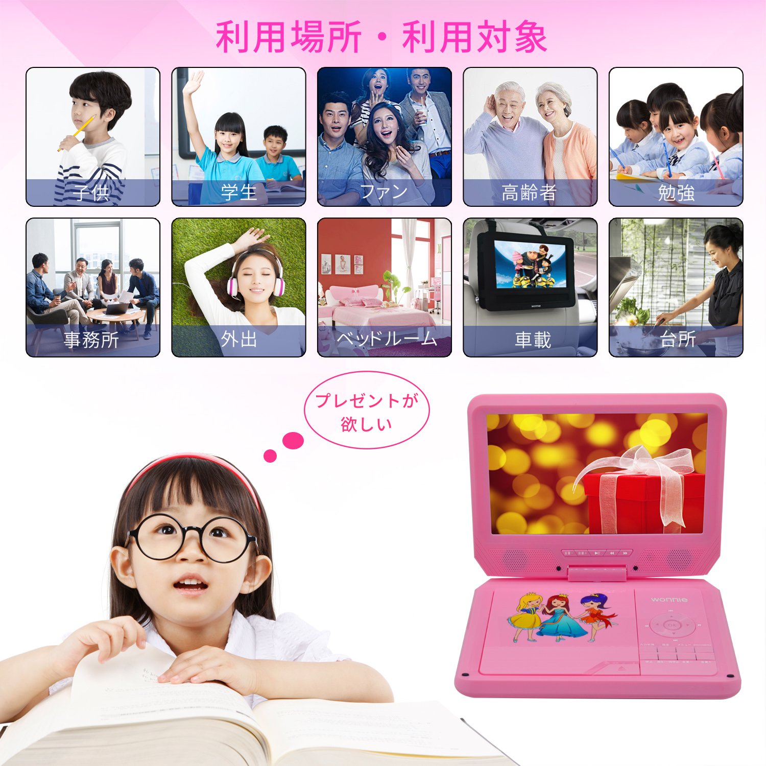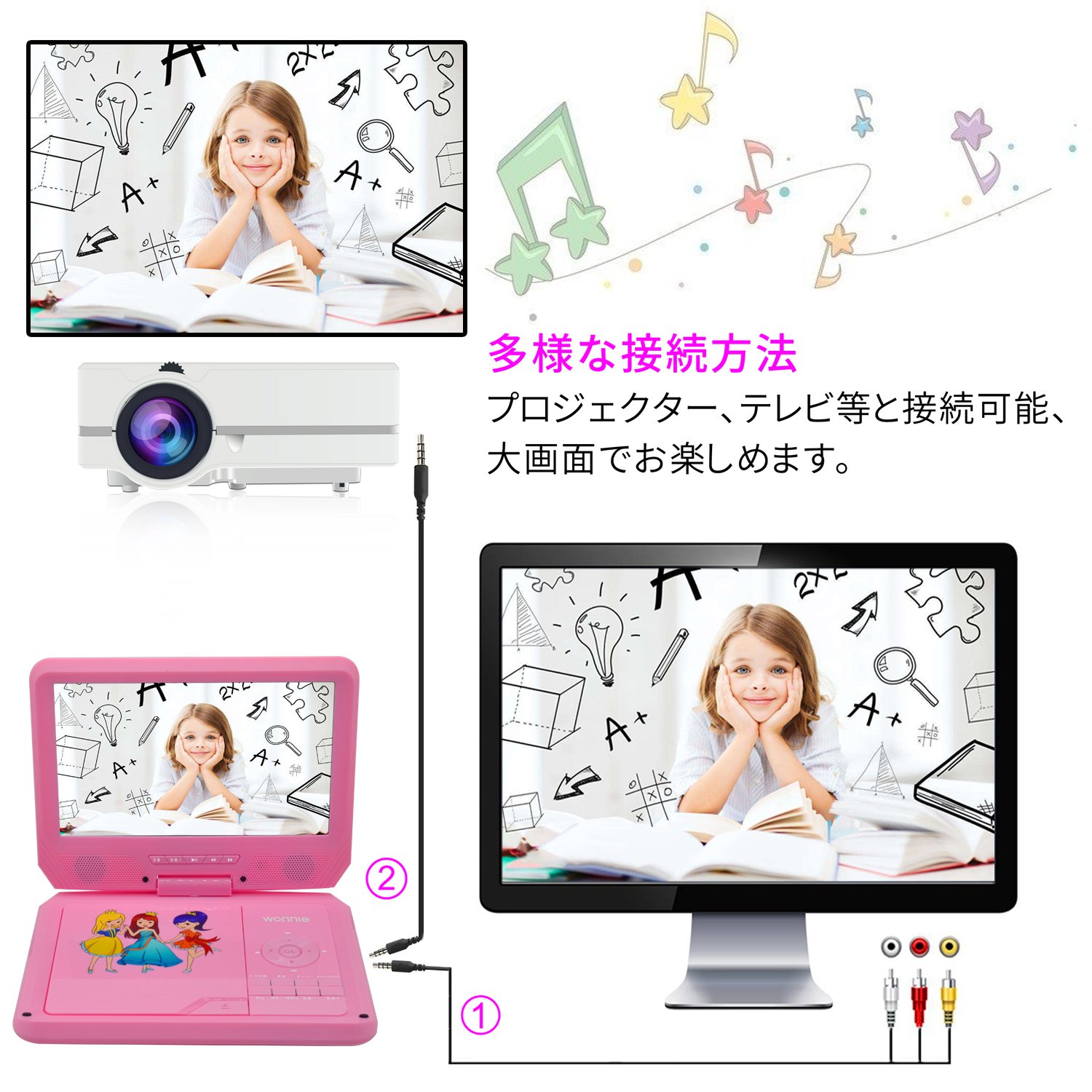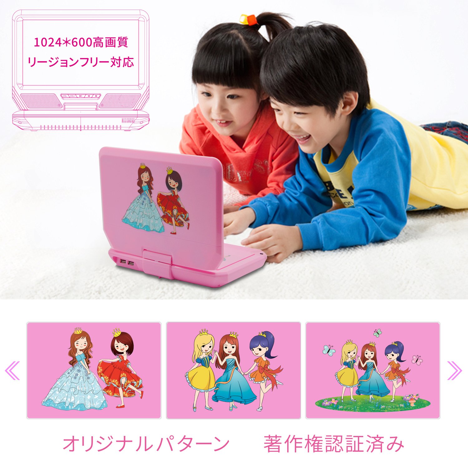 子供向けデザインされたポーダブルDVDプレーヤー、