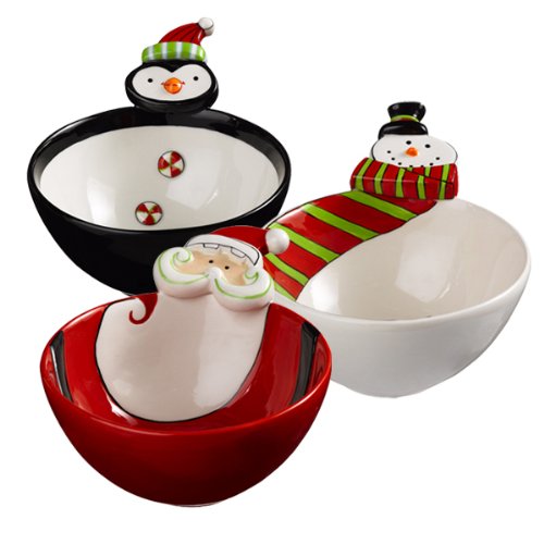 Grasslands Road Holiday Studio 100 Ceramic Snowman Santa Penguin Bowls with Character Handles, Set of 6