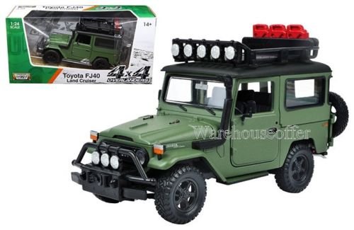 -. Binding : Toy -. Brand : Motor Max -. EAN : 0736983525673 -. Feature : Motor Max American Classis / Licenses By Motor Max / Scale: 1:24 DieCast Metal With Some Plastic Parts / Rubber Tires & Detailed Interior / Brand New Box -. IsAdultProduct : 0 -. Label : Motor Max -. Manufacturer : Motor Max -. ProductGroup : Toy -. ProductTypeName : TOYS_AND_GAMES -. Publisher : Motor Max -. Studio : Motor Max -. Title : New 1:24 W/B MOTOR MAX COLLECTION - GREEN 4X4 OVERLANDERS TOYOTA FJ40 LAND CRUISER Diecast Model Car By MOTOR MAX -. UPC : 736983525673