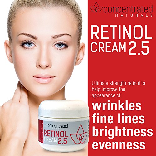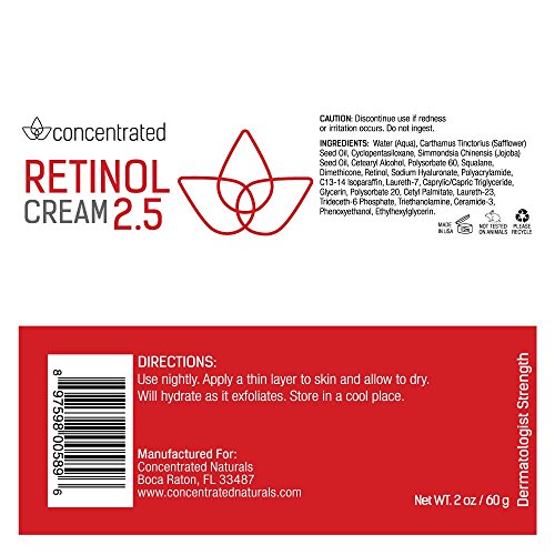 Keep your skin looking smooth, appearing even, youthful and bright using our Retinol Cream 2.5% Advanced Cream for Face to help fade the appearance of fine lines and wrinkles and balance out the appearance of blotchiness and unevenness. Our nutrient rich formula contains NO unnecessary fillers and cutting edge ingredients and is suitable for both men and women of all skin types and tones including normal, dry, combination, oily, sensitive, mature, older, fair to darker skin tones such as African-American, Asian, Latin, Indian and Mediterranean. To use, wash face using a gentle cleanser and pat dry. Avoiding direct eye contact, apply a thin layer of cream and allow to dry. Apply once nightly at bedtime. Can be applied after serum if desired. Will hydrate and moisturize. Store in a cool place. Ingredients: Purified Water (Aqua), Simmondsia Chinensis (Jojoba) Seed Oil, Prunus Armeniaca (Apricot) Kernel Oil, Squalane, Hyaluronic Acid, Retinol, Laureth-7, C13-14 Isoparaffin, Polyacrylamide, Phenoxyethanol, Ethylhexylglycerin, Alpha-Tocopherol. Caution: Discontinue use if redness or irritation occurs. Do not ingest. We are fully committed to your happiness, love our Retinol Cream 2.5% Anti-Aging Cream or get your money back! MADE IN THE USA