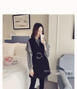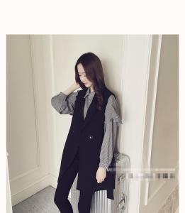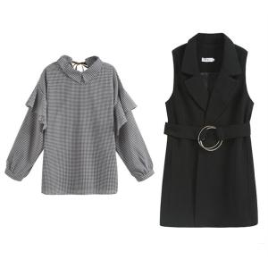 袖のフリルが可愛いチェック柄ブラウスに、ジレがオシャレなセットコーデ♪