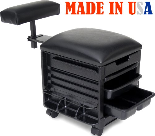 Studio : Dina Meri Publisher : Dina Meri Product Description Professional Pedicure Unit Made in USA! By DINA MERI leader in Salon equipment manufacturing. This unit features: ABS PLASTIC CONSTRUCTION BODY, Padded vinyl Seat adjustable padded FootRest (Horizontal Vertical), 2 assorted trays, "Easy Roll" Roll-up door and 2 side pockets with "tip-preventing" dividers and wire support for additional product storage. (Some Photos shows unit at work with product not included) Holds up to 220lbs Colors: Black. Overall Dimensions: 16"w x 20"d x 18"h, Weight: 19 lbs. ECO friendly 100% Recyclable ABS PLASTIC with a Scratch Smear Resistant Textured Finish, FOR ACCESSORIES AND REPLACEMENT PARTS PLEASE VISIT DINAMERI.COM *****IMPORTANT: This pedicure is designed to hold up to maximum 220lbs, it does NOT have locking wheels, therefore on a smooth floor it might slide. Operator should not stand up while customer has their leg/s on the footrest as the unit may flip. 0