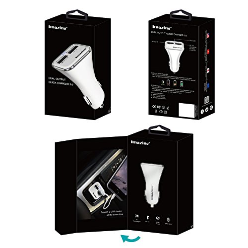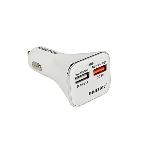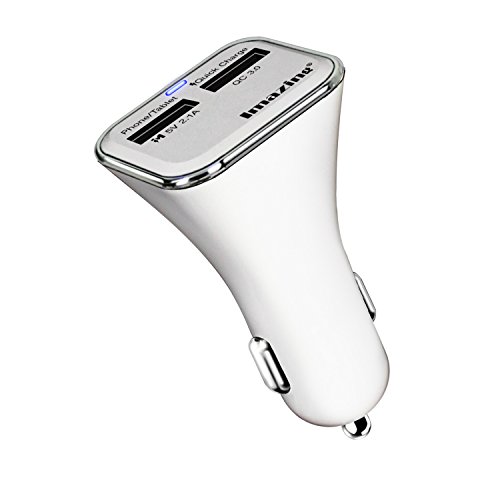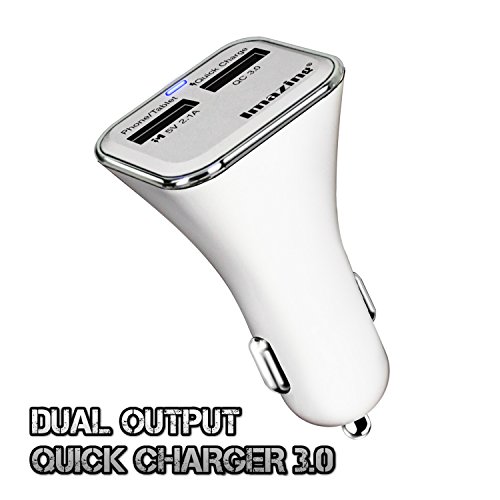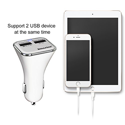 Qualcomm Quick Charge 3.0 2-port USB Car Charger , QC3.0 + 2.1A Total 28W 5A , for Samsung Galaxy S7/S6/S6 Edge, iPhone, iPad, LG , Nexus, HTC, Sony and more (White)